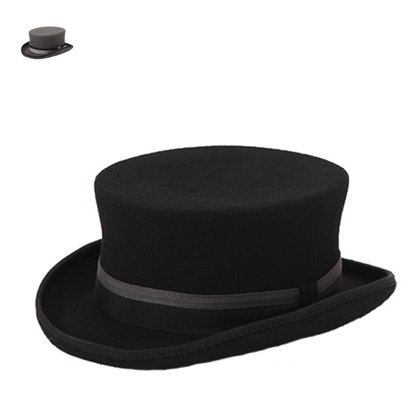 シンプルなウール100%のシルクハットです。不思議の国のアリスのいかれた帽子屋から名前をとってマッドハッターとも呼ばれています。マジシャンが手品のときにかぶったり、モーニング、タキシード、燕尾服などの礼服に合わせる正装の帽子として有名です。全体的にかたい質感でシルエットが崩れにくいのも特徴です。
