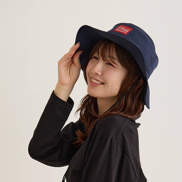 マンハッタンポーテージ UV サンシェードハット 帽子 アゴ紐付き つば広 日よけ 黒 紺