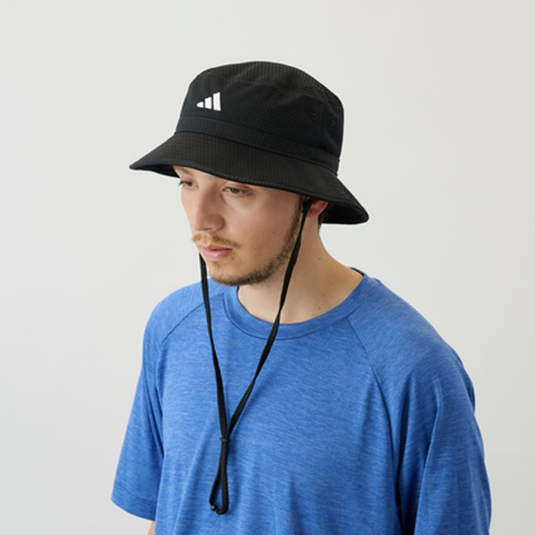 通気性のある軽量ライトメッシュ素材を使用したadidas(アディダス)のアドベンチャーハットです。通気性抜群な軽量ライトメッシュ素材で、長時間被っても蒸れを感じにくい夏定番アイテムになっています。ツバの長さが6.5㎝あり、UV90%カット(ツバ部分)でしっかりと日よけをして紫外線を防止します。洗濯機洗い可能、額に接触する部分は吸汗速乾リサイクル素材を使用しています。アゴ紐が付いていて取り外し可能。ポリエステル100%、頭回り58cm、縦31cm×横31cm×高さ11cm、つばの長さ6.5cm。#10代 #20代 #30代 #40代 #50代 #60代 #70代 #80代 #メンズ #レディース #黒 #ブラック #春 #夏 #秋 #冬 #ヒモ付き #バケットハット #バケハ #野外 #日よけ #軽い #釣り #アングラー #山登り #登山 #トレッキング #海 #プール