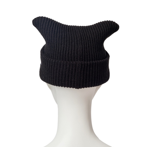 キッズ向け、着用時に猫耳のように見えるNEW ERA(ニューエラ)スクエア・ニットキャップ。【素材】本体:アクリル100% /刺しゅう糸:ポリエステル100%。【頭回り】フリー(50cm~54cm推奨)。【帽子の大きさ】縦17cm×横21cm(平置き時)。【折り返し部分】6cm。 #キッズ #子供用 #子ども #幼稚園 #小学生 #4才 #5才 #6才 #女子 #秋 #冬 #スクエアニット #ネコミミ #猫耳 #ネコ耳 #ねこみみ #ダンス #洗える #かわいい #黒 #ブラック #ニットキャップ #ニット帽 #帽子