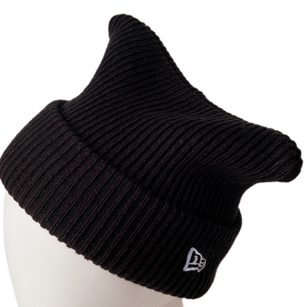 ニューエラ キッズ スクエアニット帽 猫耳 ネコ耳 KIDS SQUARE RIB KNIT 黒 ブラック