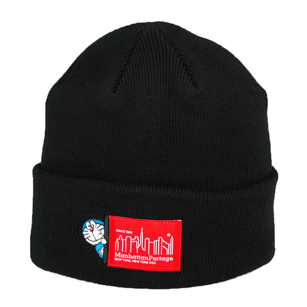 マンハッタンポーテージ ニット帽 ブランドラベルワッチ ドラえもん コラボ 黒