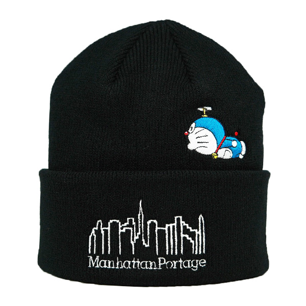 マンハッタンポーテージ ニット帽 エンブロイダリーワッチ ドラえもん コラボ 黒