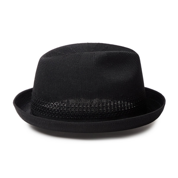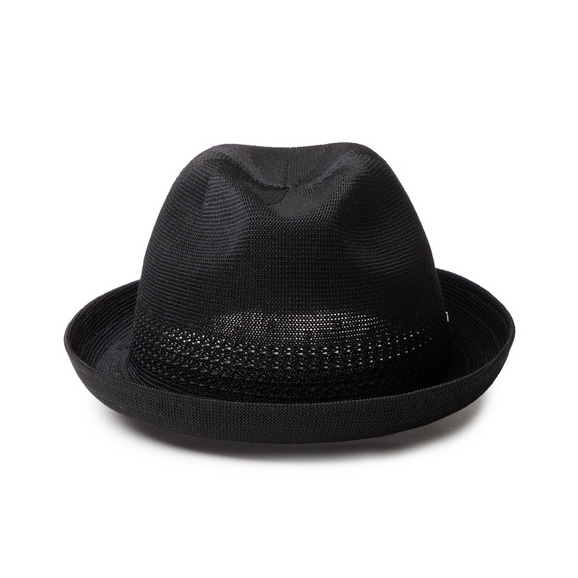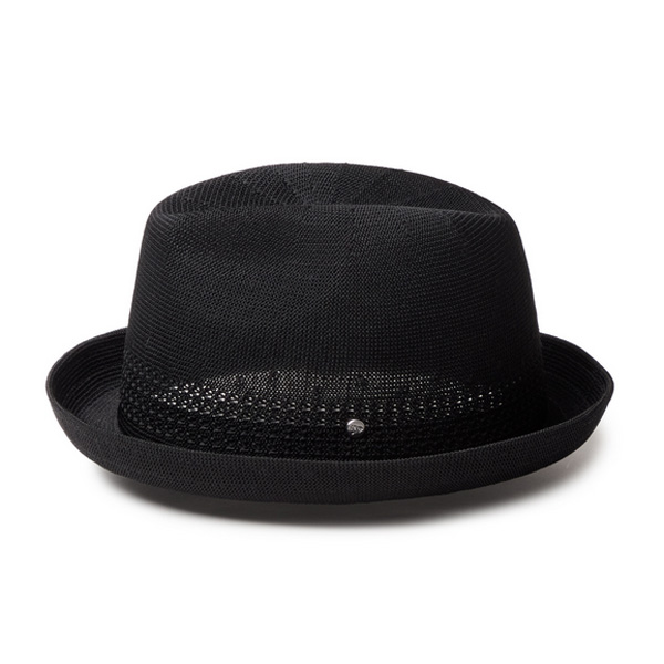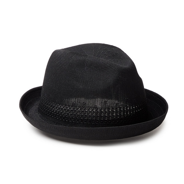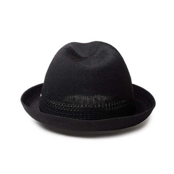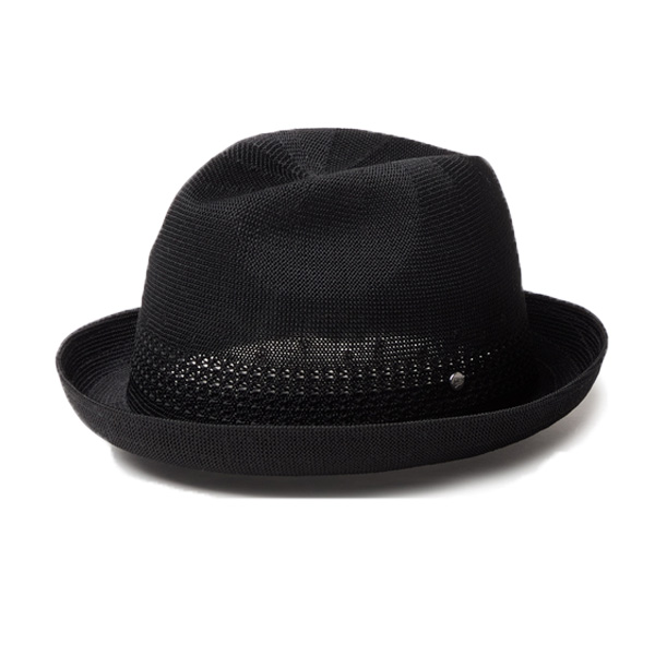 ニューエラ(NEW ERA)のやわらかな9ゲージのニット生地を使用したフェドーラハット。メッシュになっているので通気性があり蒸れにくくなっています。サイドにはミニメタルパーツでつくられたシルバーのフラッグロゴがついて高級感があります。ツバは全体にロールアップ(上向き)になっていて、やや小つばタイプになります。クラウンの高さもやや低め。リボンなしのスッキリしたデザインです。【素材】ポリエステル100%。【頭回り】M(57cm)、L(59cm)、XL(61cm)。【帽子の大きさ】縦28cm×横25cm×高さ12cm。【つばの長さ】4cm。 #10代 #20代 #30代 #40代 #50代 #60代 #70代 #80代 #メンズ #レディース #黒 #ブラック #大きいサイズ #中折れハット #フェルトハット #小つば #紳士 #ニューエラ #NEW ERA